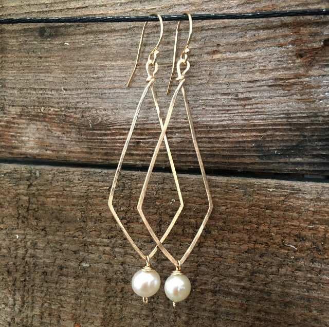14k gold filled with a flat hammer finish and wrapped fresh water pearls.