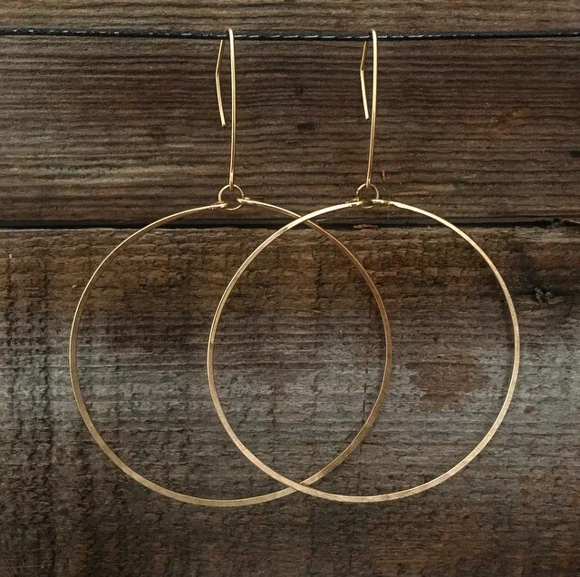 Shop › Eclipse Image 1 of 1 Eclipse $74.00 hoops are about 2.5” in diameter and earrings are about 3.5” total in length. 14k gold fill with a flat hammer finish Purchase Added! hoops are about 2.5” in diameter and earrings are about 3.5” total in length. 14k gold fill with a flat hammer finish