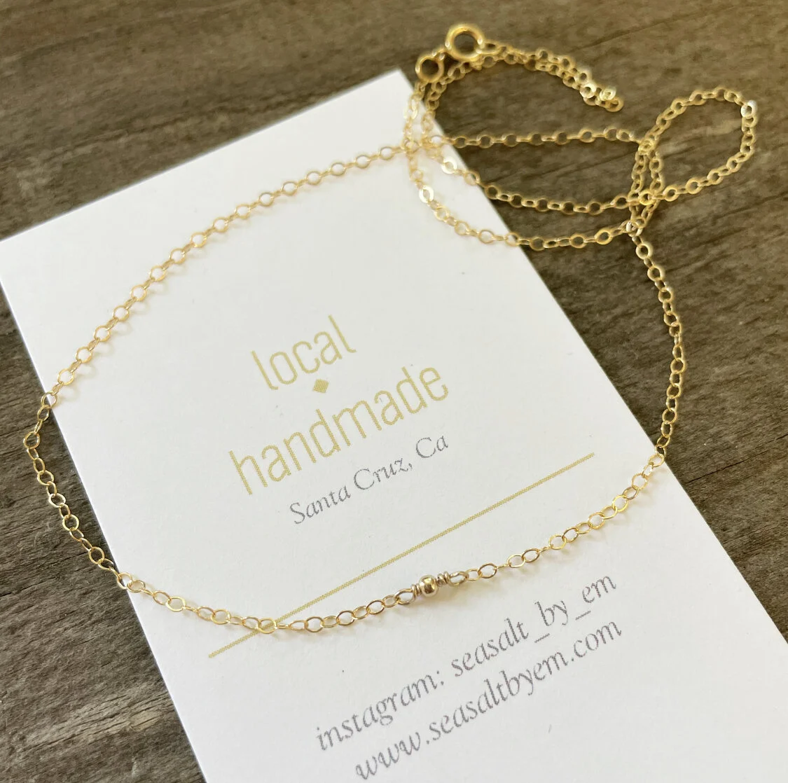 Shop › Goldie Choker Image 1 of 1 Goldie Choker from $48.00 14k gold fill chain with a tiny 14k gold filled bead attached in the center. length: Select length 14" 15" 16" Purchase Added! 14k gold fill chain with a tiny 14k gold filled bead attached in the center.