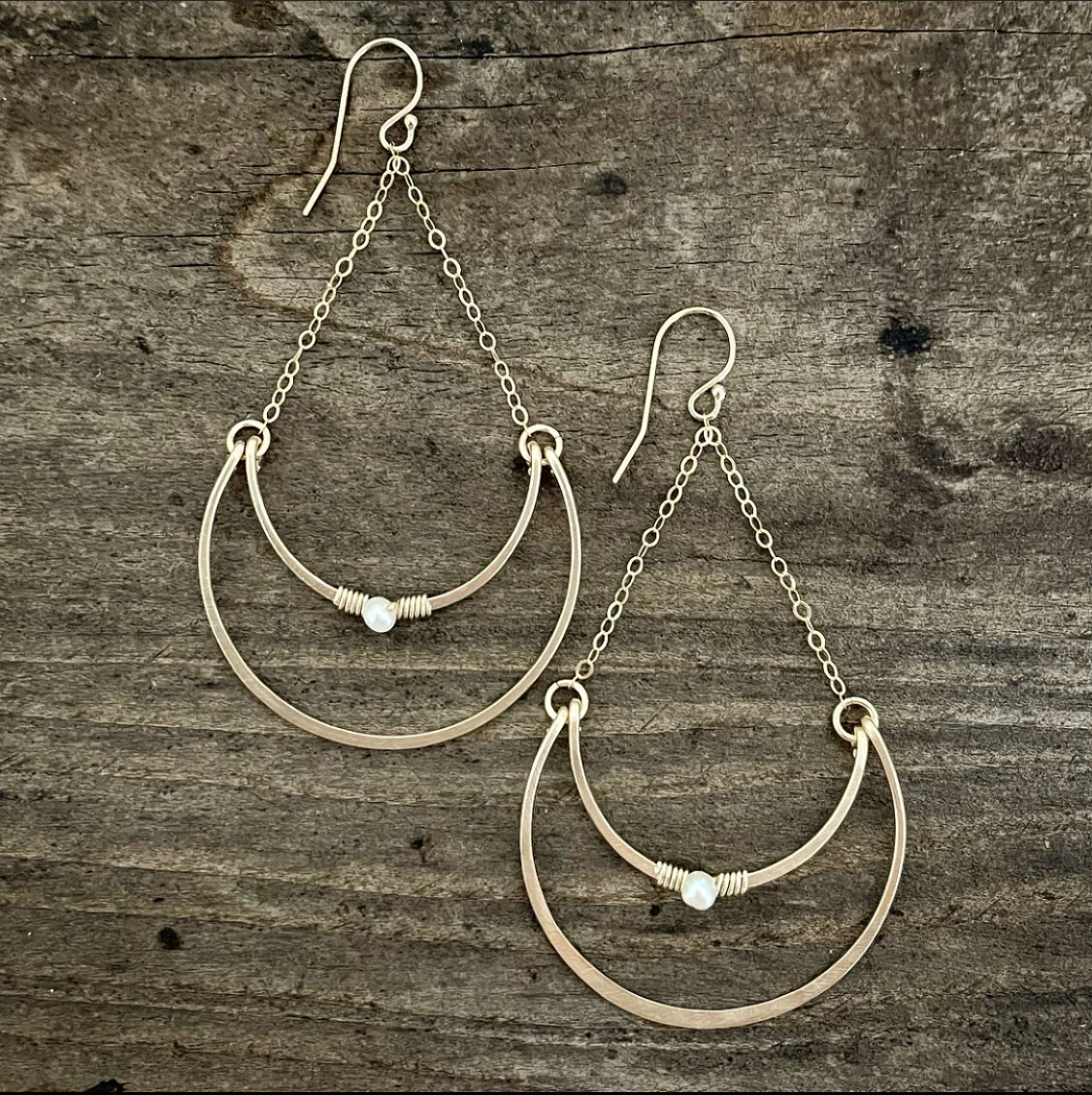 14k gold fill wrapped with freshwater pearls and a flat hammer finish.