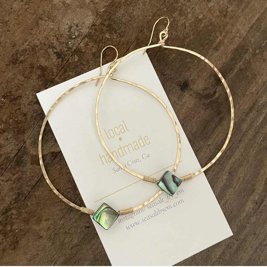 Shop › Off the Reef Hoops Image 1 of 1 Off the Reef Hoops $78.00 sold out Abalone shells with 14k gold fill and a hammered finishabout 3” total in length Sold Out Added! Abalone shells with 14k gold fill and a hammered finishabout 3” total in length