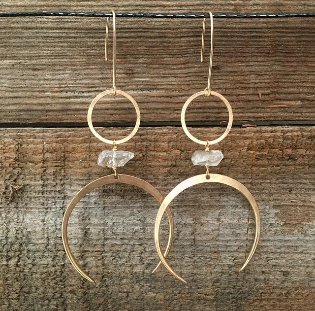 Raw Herkimer Diamonds, 14k gold fill, flat hammer finish.