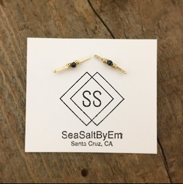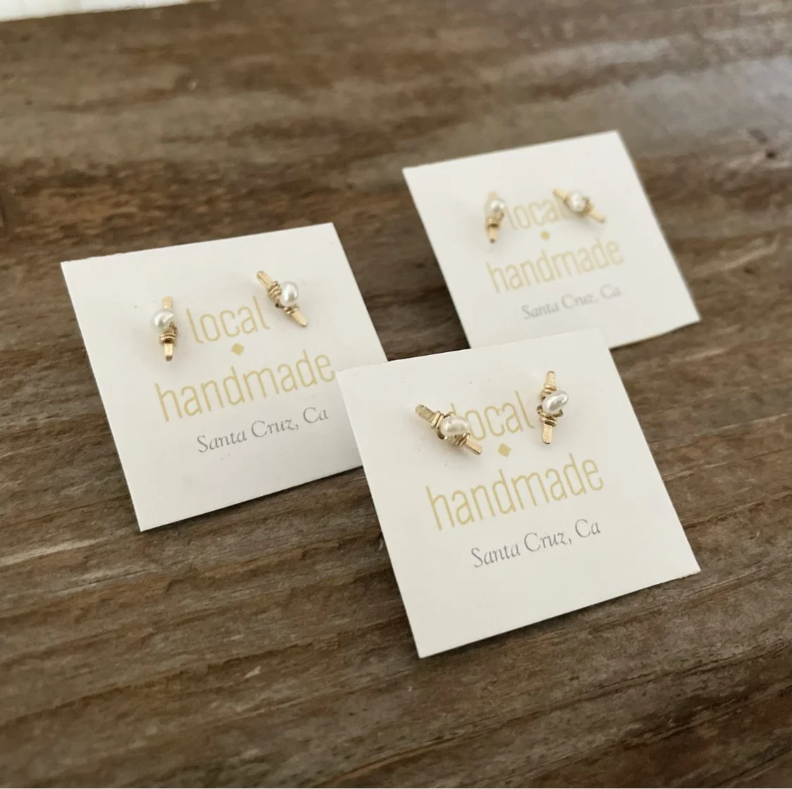 Handmade studs using 14k gold filled. Studs are hammered flat and wrapped with your choice of white fresh water pearls or black Spinal.